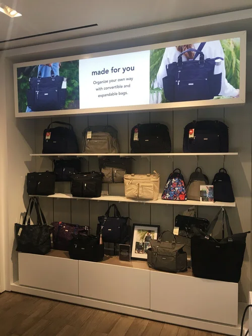 I oversaw the design and development of the Baggallini kiosk, as well as merchandising and signage creative.